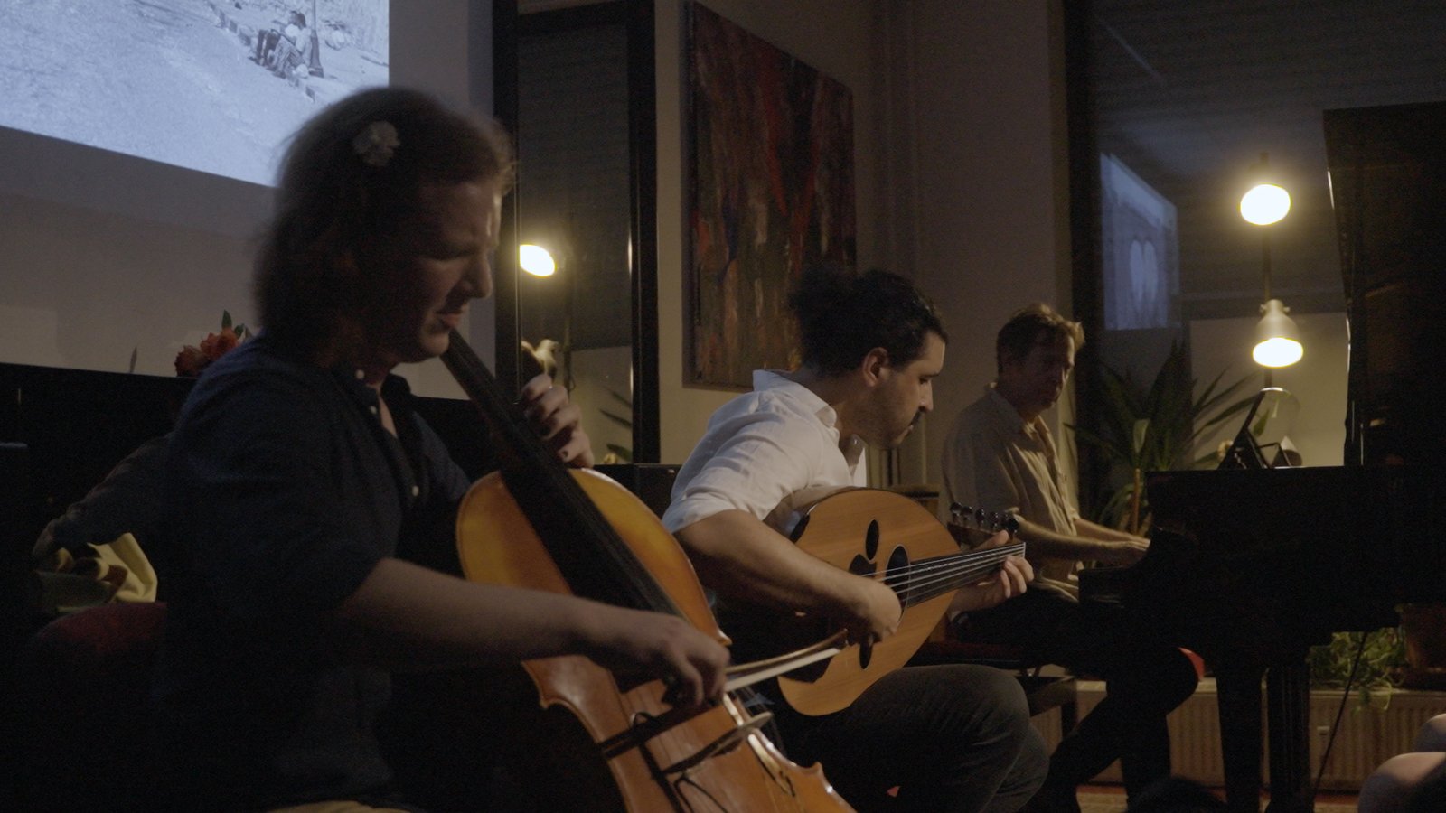Sounds from Tripoli was conceived as a journey into memory, sound, and place. In its first performance, Sufian Ararah shared the stage with Ahmed Al Sharif (vocal–poetry), Paul Rittel (cello), and Andreas Staffel (piano). Together they wove music, film, and poetry into an evocative portrait of Tripoli, Sufian’s hometown. The oud and cello are intertwined in rhythmically rich compositions, shaped by Mediterranean, North African, Jazz, and Classical traditions. Images and photography, drawn from more than a decade of filming in Libya, unfolded alongside the music — glimpses of the medina, the coast, family rituals, and fleeting everyday moments.